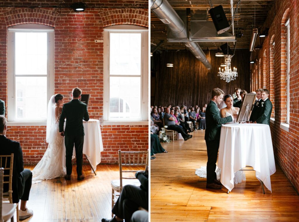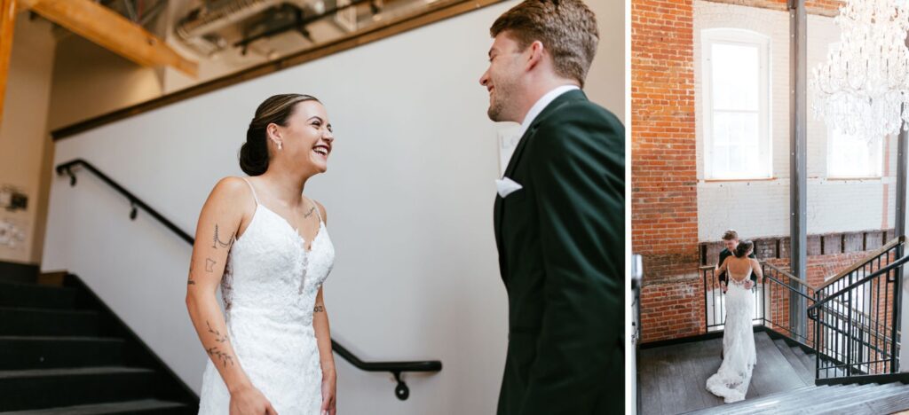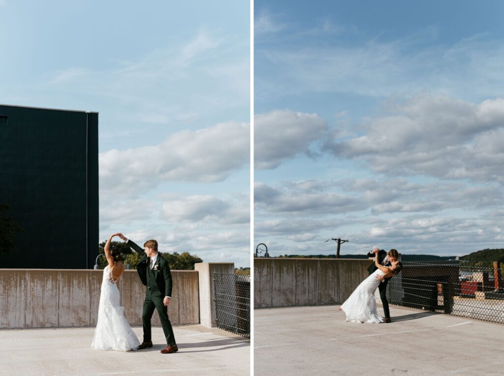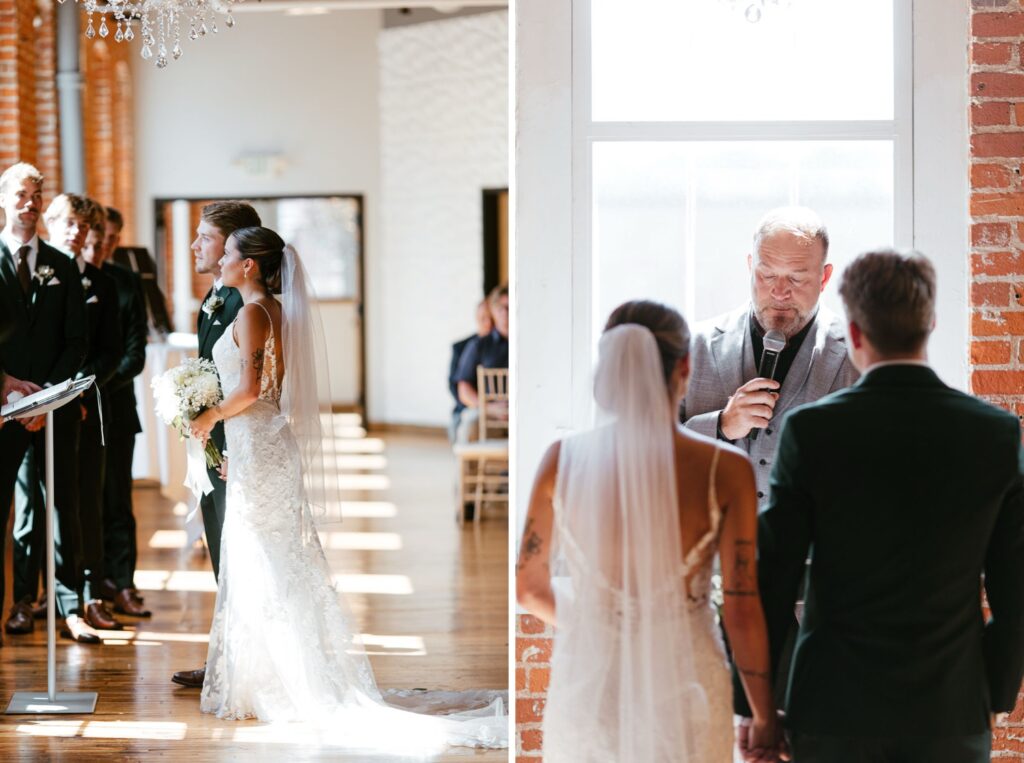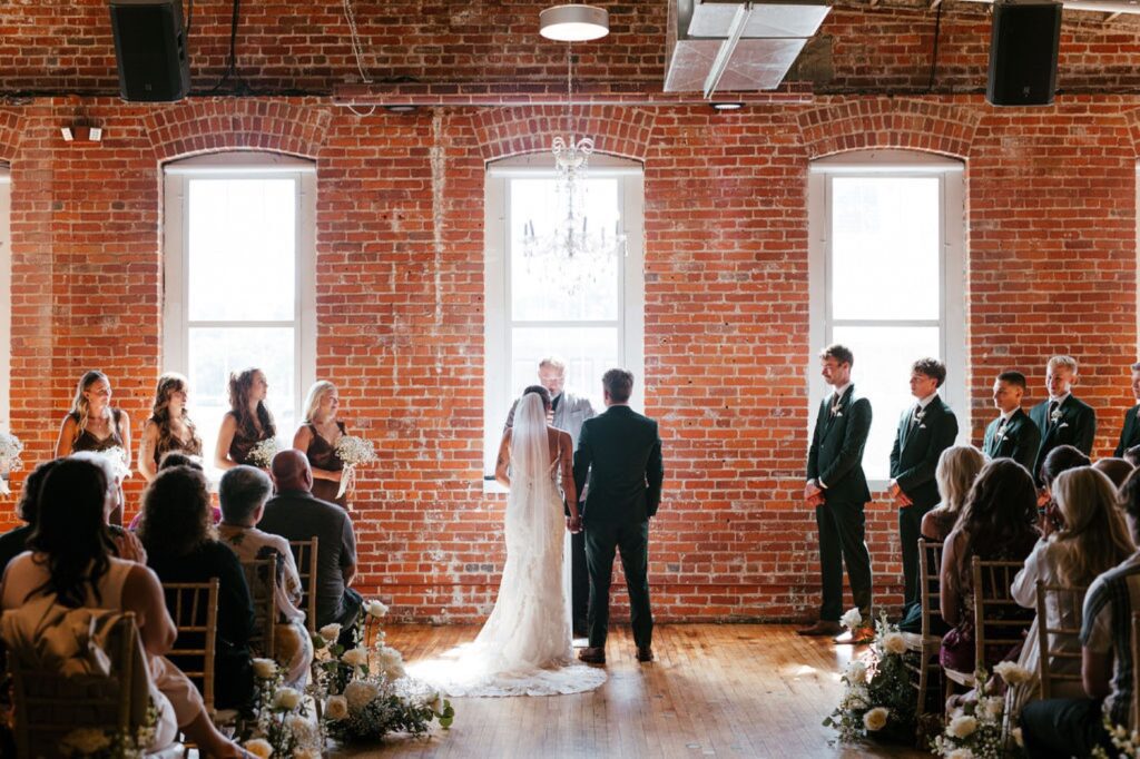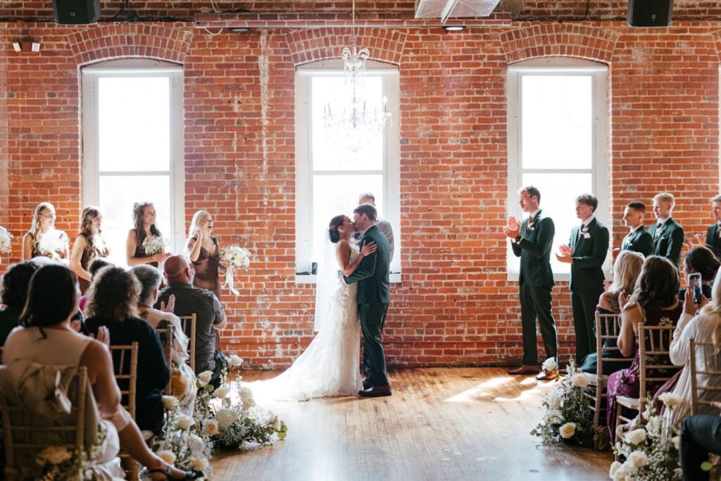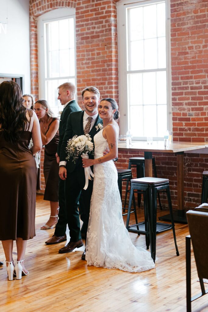 Their celebration took place at the stunning JX Venue in Stillwater, Minnesota – a local favorite for its soaring ceilings, rich brick walls, and elegant industrial charm. Audrey and Thomas filled the space with laughter, family, and the kind of joy that makes documenting a wedding feel effortless.