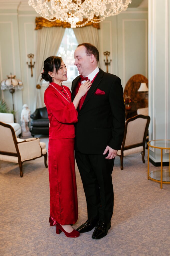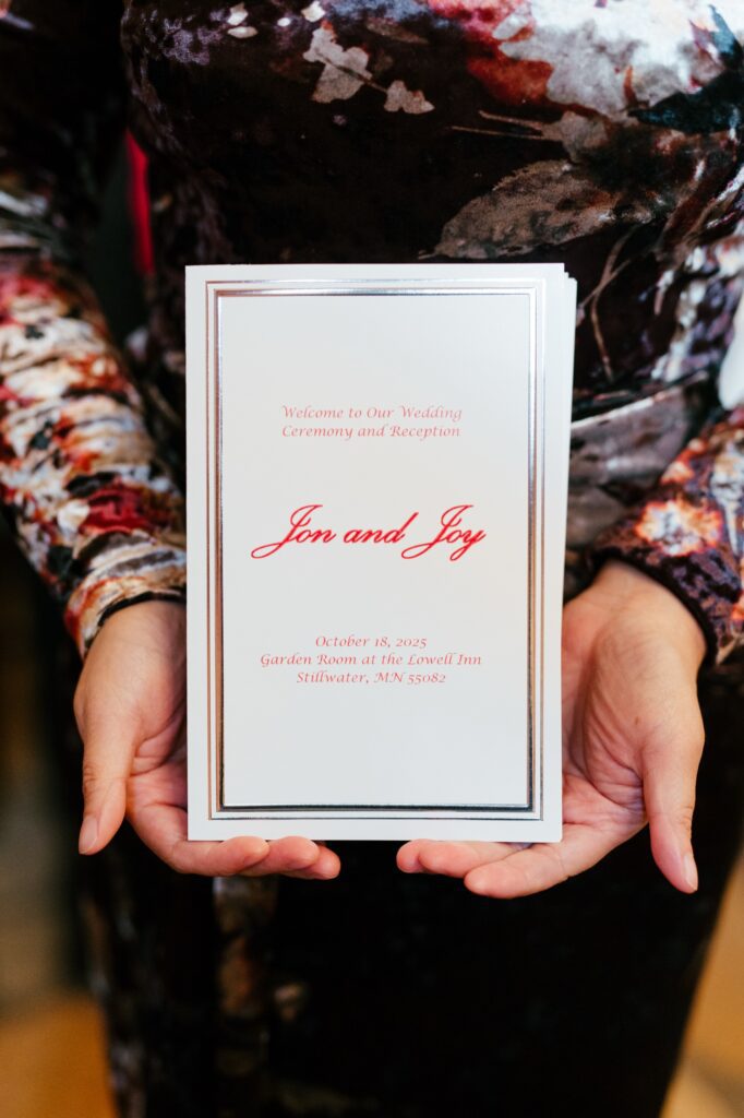 Joy and Jonathan were the sweetest couple. They booked me just a month before their wedding and I was so excited to capture their love story at the beautiful Lowell Inn in Stillwater! Joy began the day in a stunning silk red dress, changed into a classic white gown for the ceremony, and ended the night in another chic red reception dress that was the perfect finishing touch.