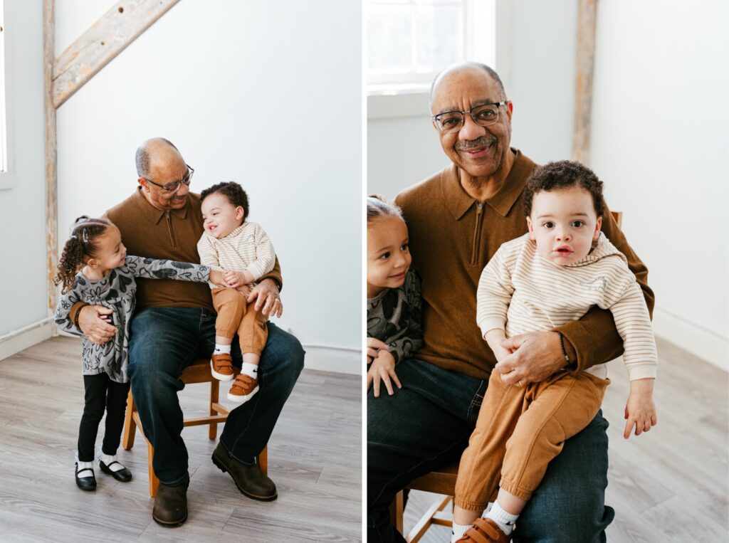 I got to meet Kim’s parents and document the beautiful relationship they share with their grandbabies! What a meaningful Christmas gift – a grandparent session filled with love, laughter, and so many sweet moments. ♡